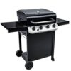 easy to move around with 4 wheels, Both Butane & Propane Gas is Compatible! Large Storage Space underneath the Gas Grill + Side Shelves. Includes Warming Rack.