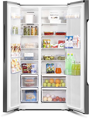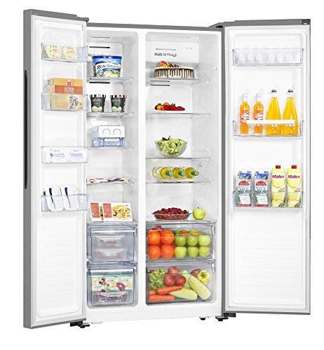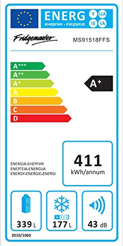 This Fridgemaster american fridge freezer has a 516 litre total capacity. It also has an efficient A+ energy rating. This frost free model prevents icy build-ups, so you wont need to manually defrost it. Plus, its salad crisper drawer will keep all your fresh fruit and veg neat and organised. Please remember to check the dimensions of this product before you purchase.