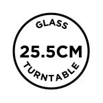 20 L cavity capacity, which comfortably fits a standard dinner plate and the glass turn-table is removable for easy cleaning, and is also dishwasher safe.